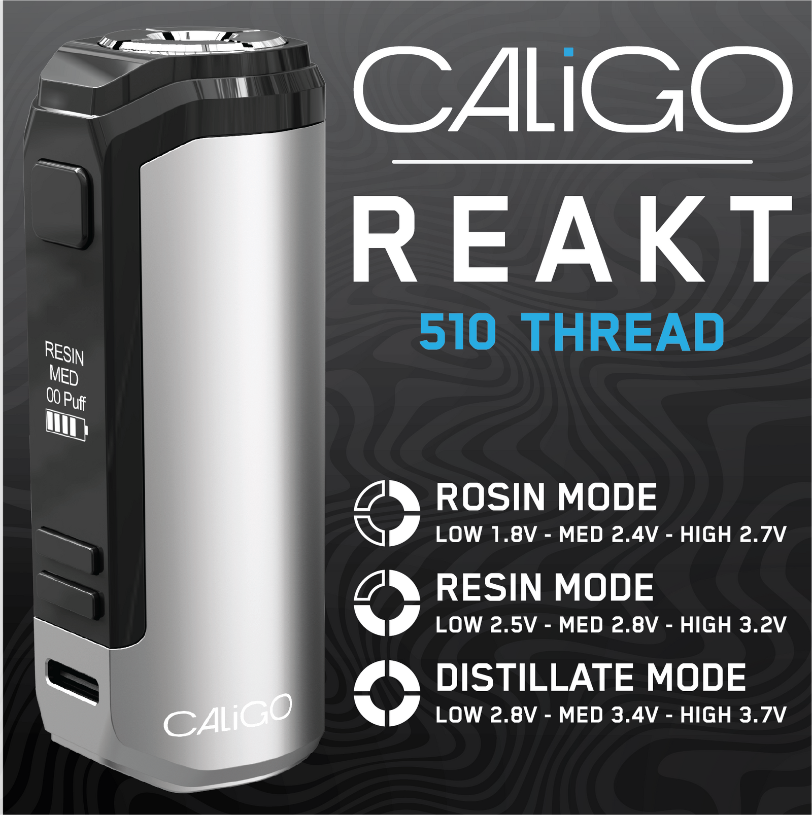 Introducing REAKT from Caligo, the first 510 thread battery with extract specific output control.